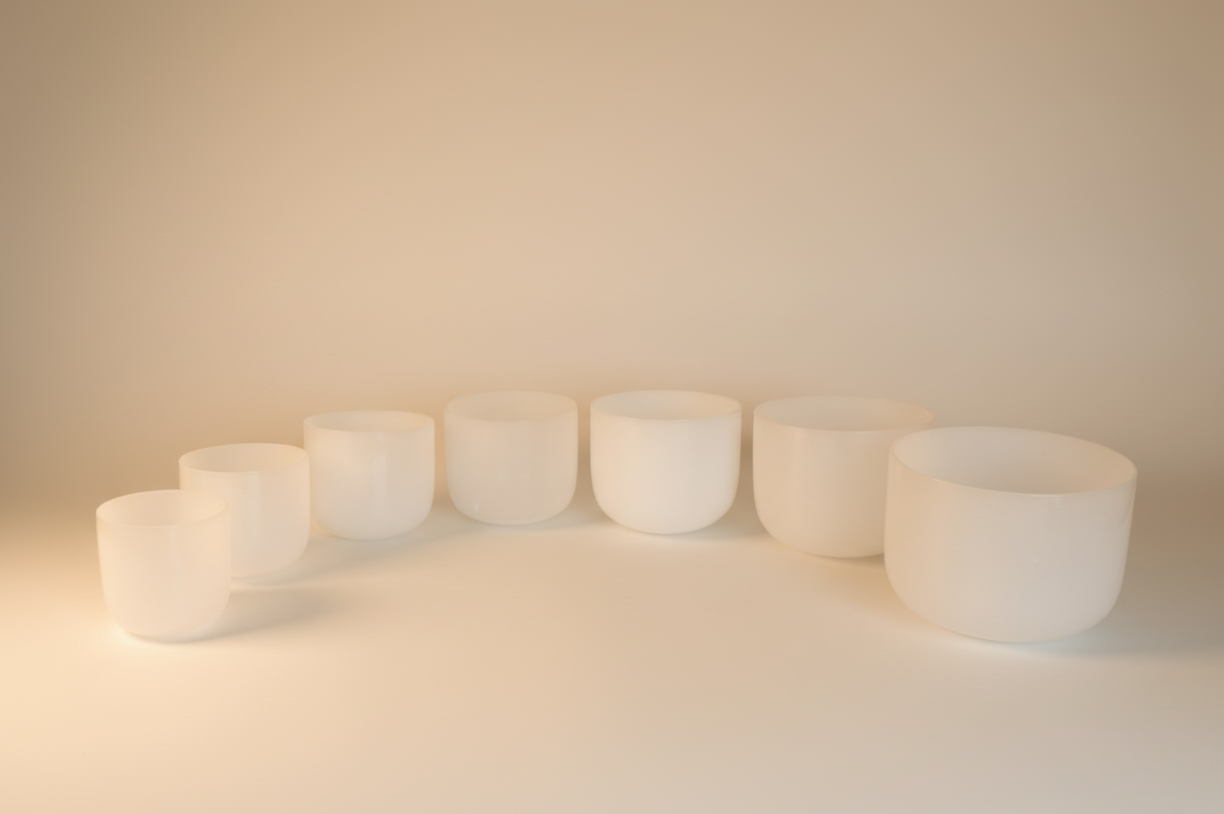 • 7 × Polished Crystal Singing Bowls (6”–12”)